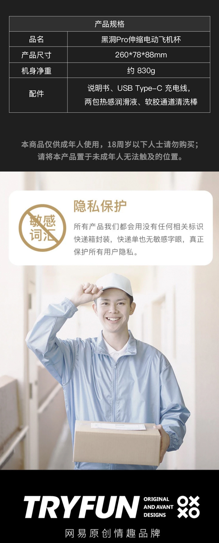 网易春风 TRYFUN 黑洞pro 男用自慰加温伸缩器具震动飞机杯